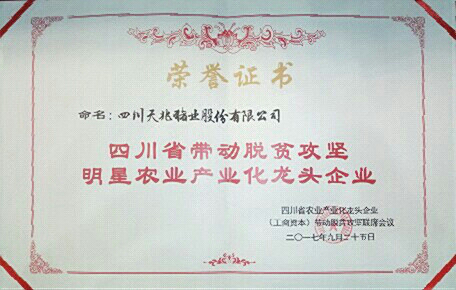 會上,在全省脫貧攻堅中發(fā)揮了顯著作用的56家農(nóng)業(yè)產(chǎn)業(yè)化龍頭企業(yè)被命名為“帶動脫貧攻堅明星龍頭企業(yè)”,天兆豬業(yè)名列其中。