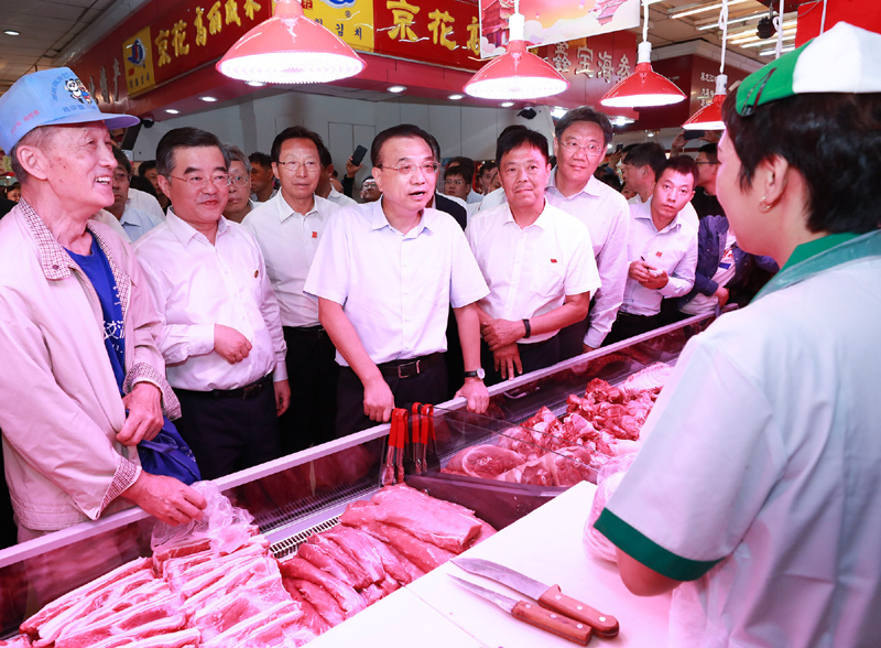 (李克強(qiáng)總理在哈爾濱菜市場(chǎng)詢(xún)問(wèn)豬價(jià) 圖源中國(guó)政府網(wǎng))