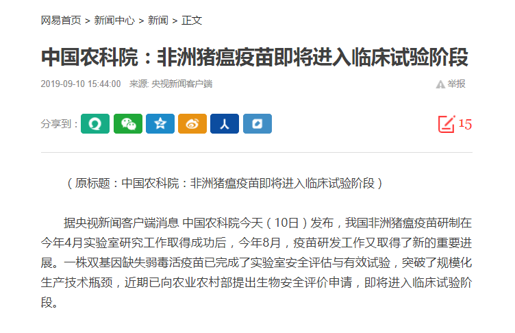 與此同時(shí),中國(guó)農(nóng)科院今日發(fā)布,非洲豬瘟疫苗即將進(jìn)入臨床試驗(yàn)階段,對(duì)養(yǎng)豬人來(lái)說(shuō),這無(wú)疑是最大的利好消息。
